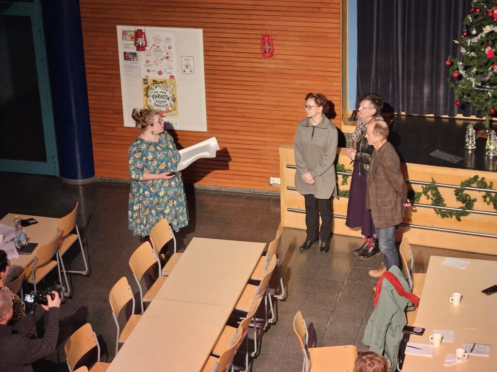 Adressin luovutus oli koskettava hetki, sillä kaikki yleisöstä nousivat seisomaan. Aluevaltuuston puheenjohtaja Hannu Kokki (SDP), aluehallituksen puheenjohtaja Riitta Raatikainen (KESK) sekä ikäihmisten ja hoivapalvelujen lautakunnan puheenjohtaja Salme Viljakainen (KESK) vastaanottivat adressin hyvinvointialueen puolesta.